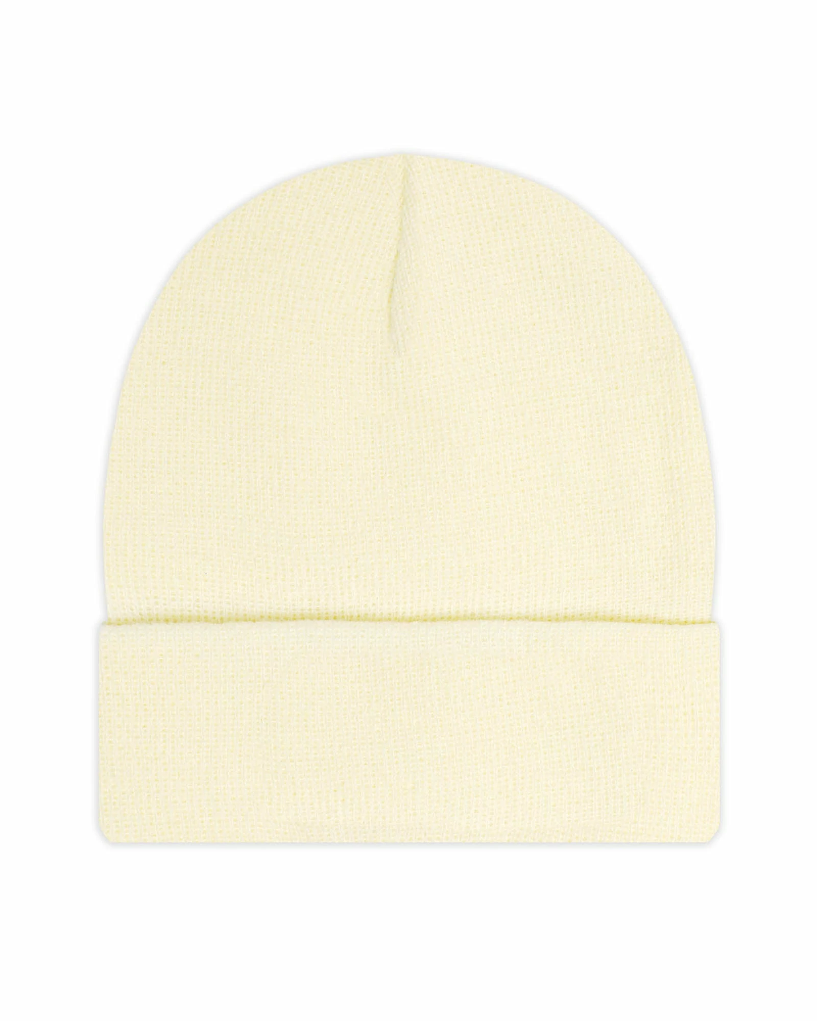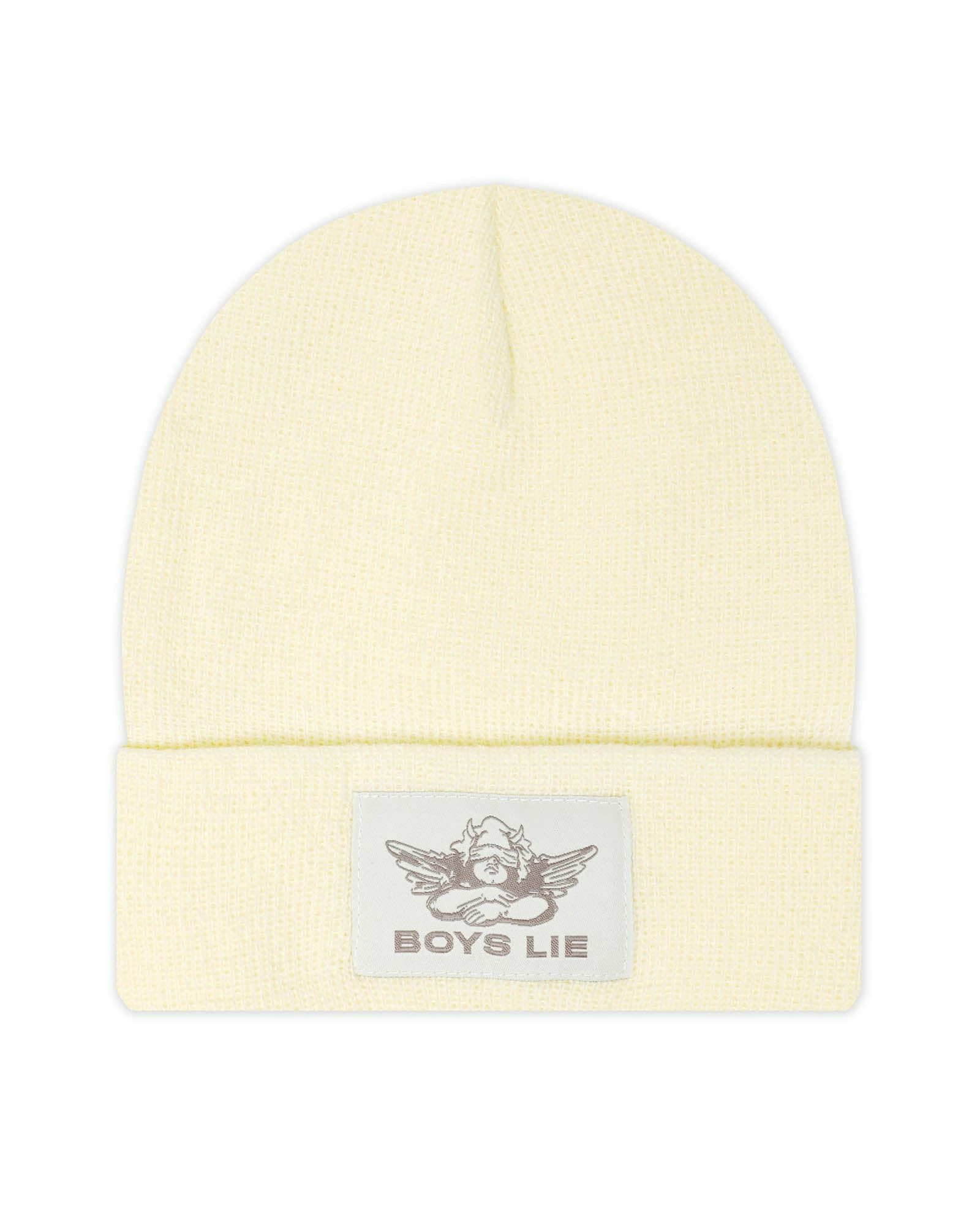 Creamy yellow beanie with monochromatic Boys Lie logo patch.