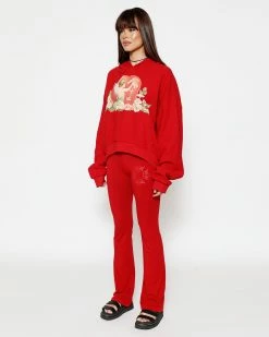 Thermal sweatpants in baby blue. High rise sweatpants with back and side pockets, elastic waistband and cuffs. Embroidered front and printed back graphics.