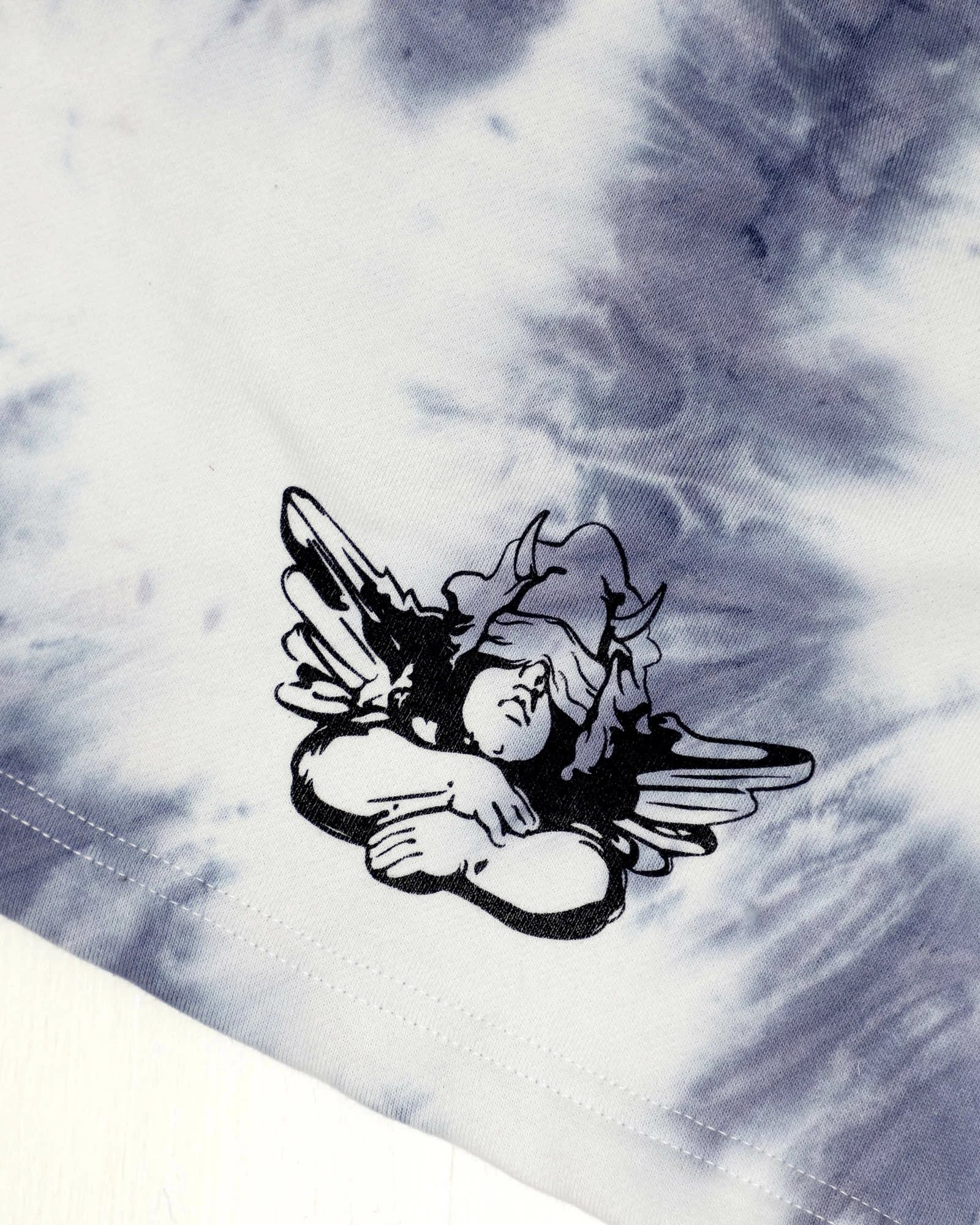 Lightweight fleece in deep purple tie dye. High rise sweat shorts with a thick elastic waistband, adjustable drawstring, and side pockets. Each item is hand dyed and may show slight color variations.